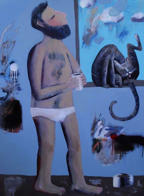 The sweet art of Thai artist Kitti Narod tickles me. I love the naiveté of his images of couples and cats and men at the beach...